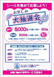大木町サービス店会は、昭和49年4月に組織し、現在18店舗で活動しています。「にこにこシール」を台紙に集めると、加盟店で金券として利用・銀行預金・アクアス入浴・Wチャンス抽選(毎月)・お楽しみ抽選会(空くじなしでお買物券が当たる)などお得がいっぱいです。
