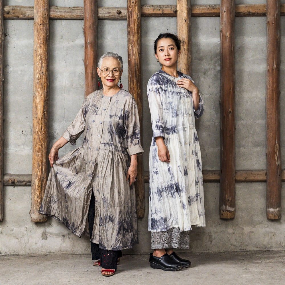 また、2019年9月には、化学繊維と化学染料で商品を展開する新ブランド「-thus-(サス)」も設立。軽くて撥水の良い化学繊維ならではの特性を生かしたレインコートやスプリングコートとしても着られるワンピースなどを展開し、機能性を備えた着方を提案。手仕事としての染めの新たな可能性を拓いています。
