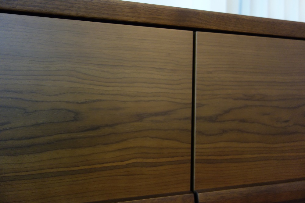 例えば、2枚以上の扉や引き出しのある家具は、加工段階で番号を付していき、組立段階で番号合わせをしていくと最終段階で木目がきれいに揃うような工夫がなされていて、見た目の美しさも申し分なし。