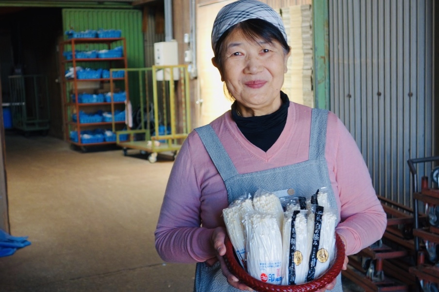 その後、夫の良充さんがえのき部会長の時、種菌センターが必要だとの思いで、しめじ部会の部会長とともに大木町の助成金を利用して種菌センターで種作りの開発をしてもらうことに。その甲斐あって種菌が安定してきたことから、ようやく生産量も増加。以来10年以上スーパーなどで地道な試食販売を展開してエノキを宣伝し、だんだんと認知されてきたのでした。