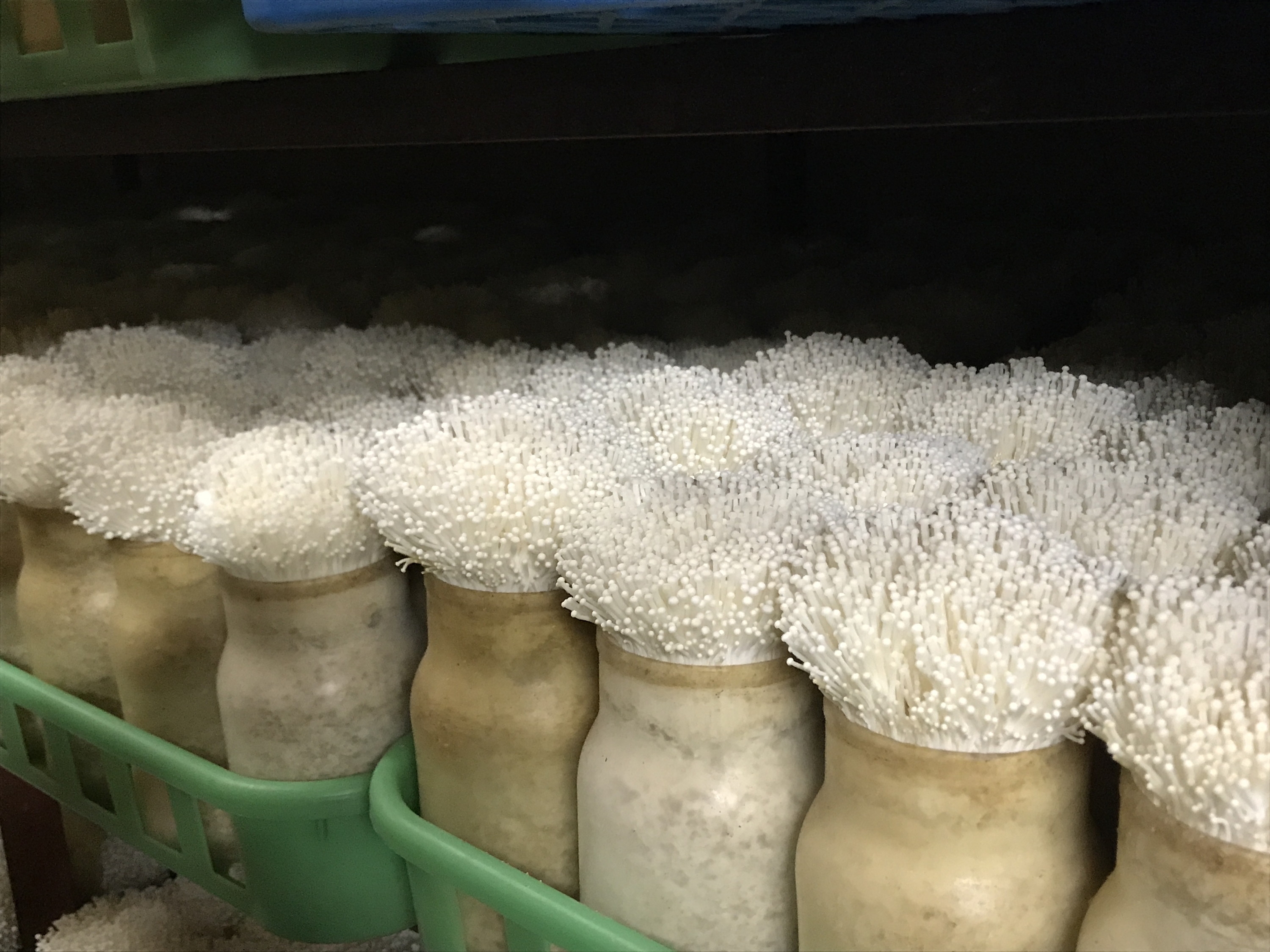 徳永さんの作るえのきは、通常よりゆっくり60日間かけて栽培したもの。温度管理にこだわり、湿度や外気導入量には細心の注意をはらいます。その上で、最適の時期を見極めて収穫されたえのきはシャキシャキ感も格別なのだとか。