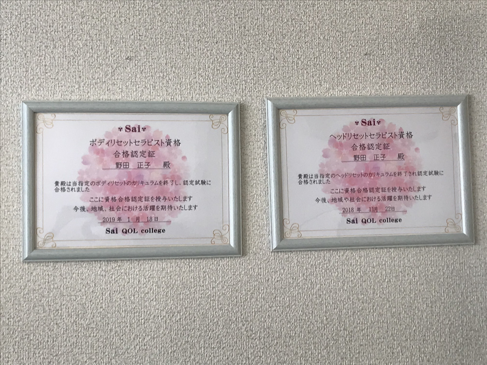希望するコースを選び、大木町の提携サロンで行われる3〜4日の集中講座に参加して技術と理論を学び、認定試験に合格すると、認定証を受け取ることができます。また、その後も定期的に開催される勉強会に参加できるので(料金別途)、開業後のフォロー体制も万全。安心してセラピストの道を歩き始めることができるのです。