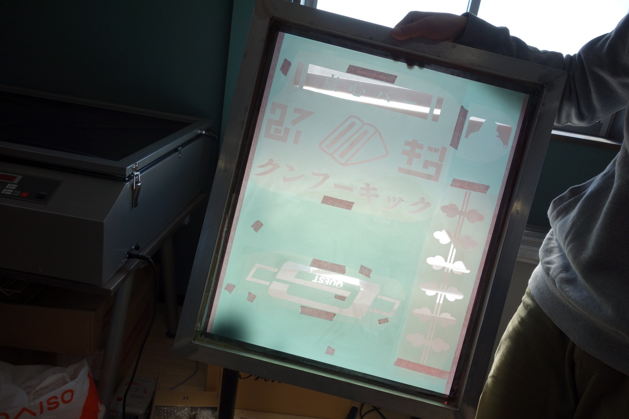 同社は、印刷物にインクを落として乗せていくシルクスクリーン印刷でプリントをしています。シルクスクリーン印刷は、使う色の数に応じて版を作成する必要があり、例えばプリントに2色使いたい場合は版が2つ必要になるという具合に、色が増えると同じだけ版が増えていくという手間暇のかかる手法です。