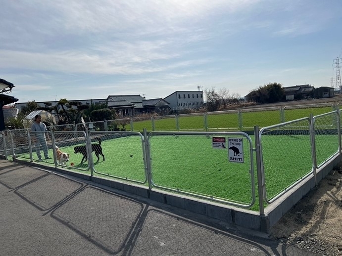 ドッグランは2024年2月にオープン。30分500円(コーヒーとクッキー付)で貸切利用できるので、犬を思いきり遊ばせてあげたいという人におすすめです。
