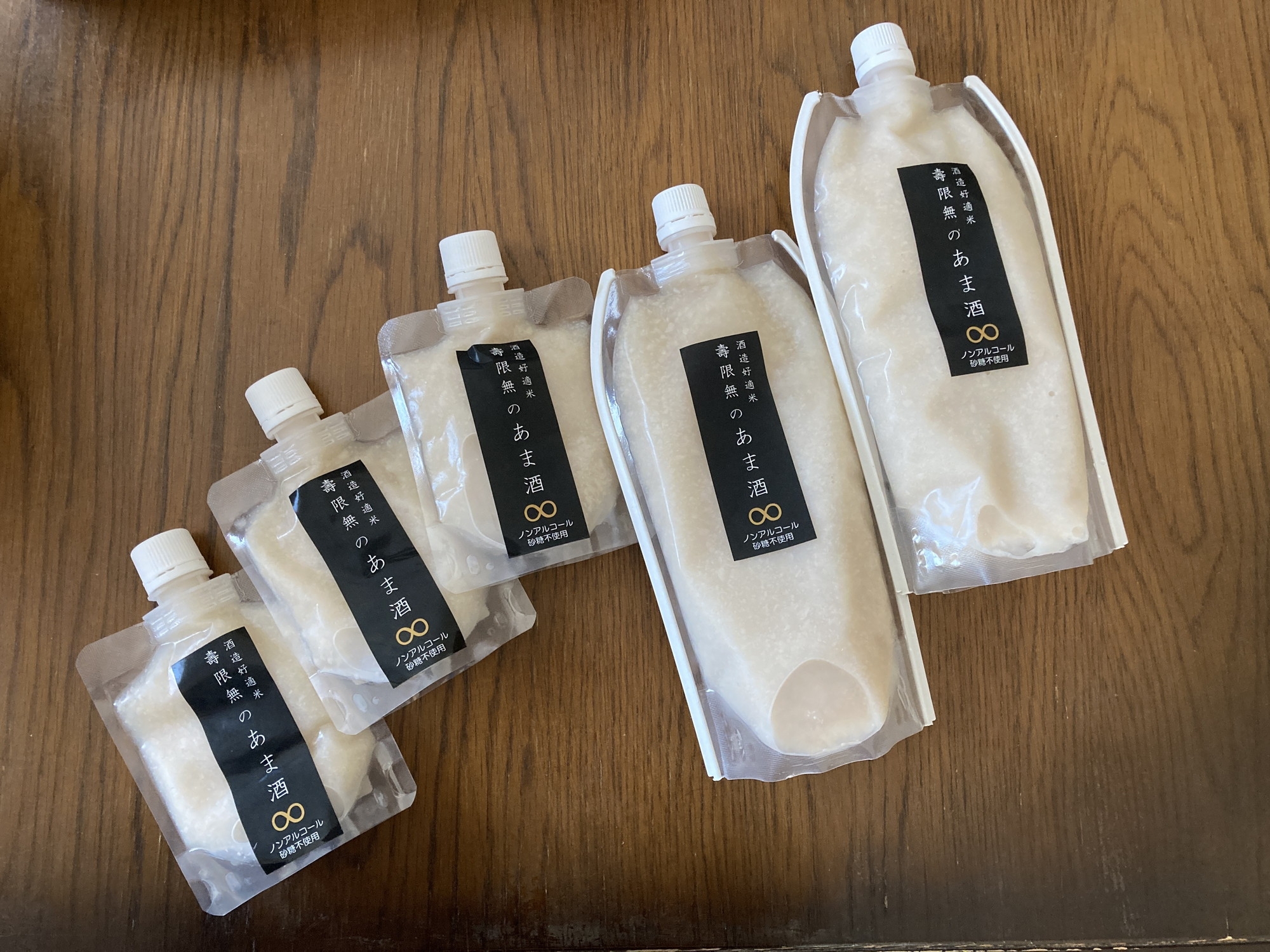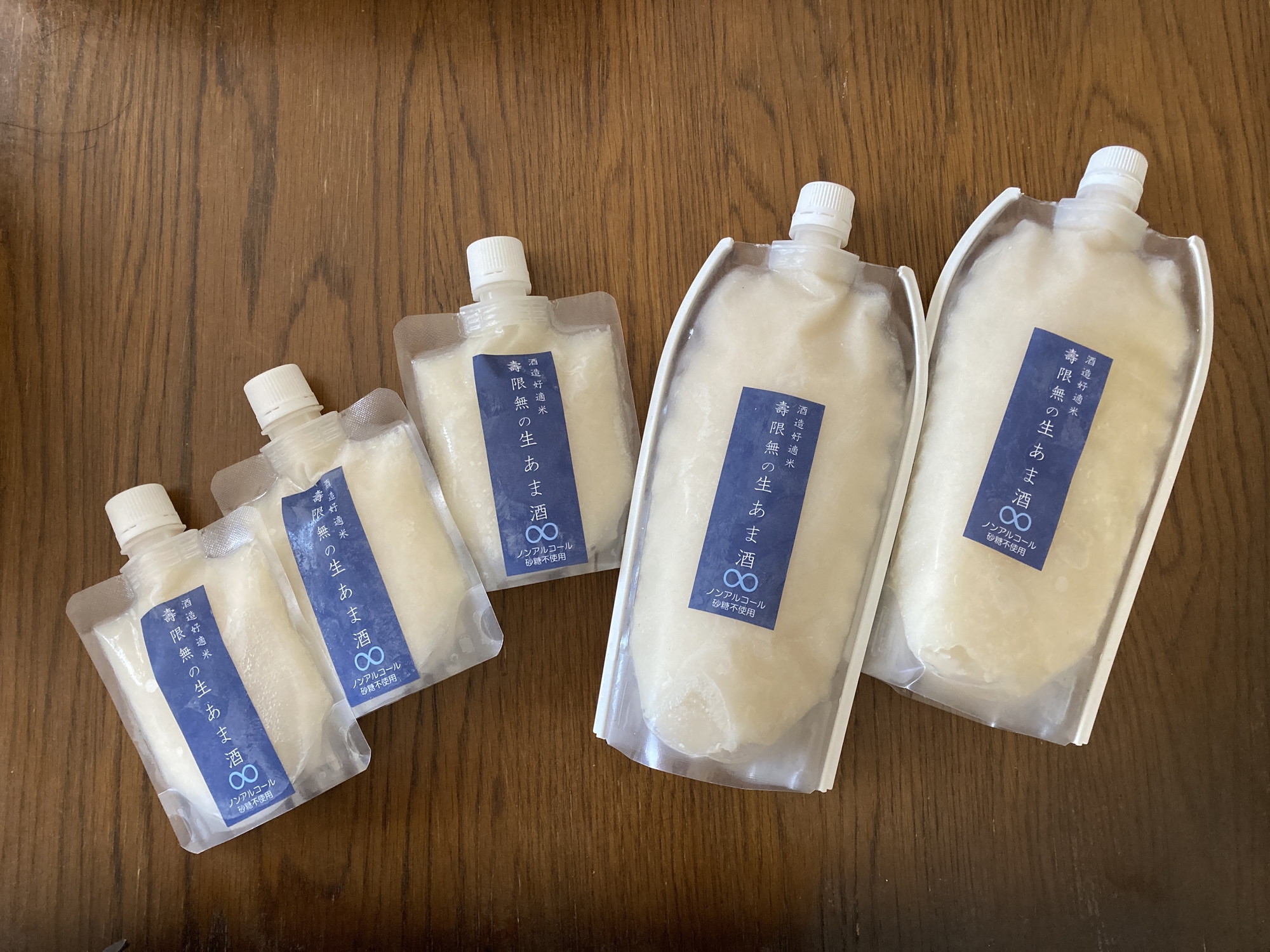 「酒造好適米 壽限無の生あま酒」は、冷蔵、冷凍で扱う商品なので、現時点では市販されていません。また、一回に60パック、月に200本しか作れない希少品なので、地元のイベント時に登場しています。