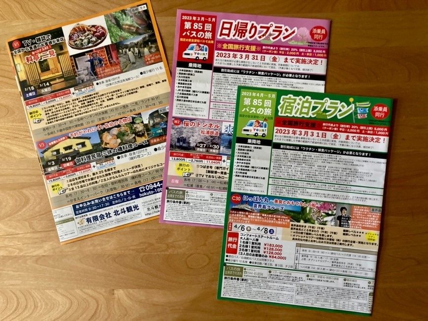 添乗員同行で、福岡市や古賀市、佐賀、熊本、大分、長崎等まで出かける日帰りや一泊のバス旅行を、2ヶ月に一度のペースで募集するというもの。一見普通のバスツアーのように見えますが、リピーター続出のこだわりが詰まっています。