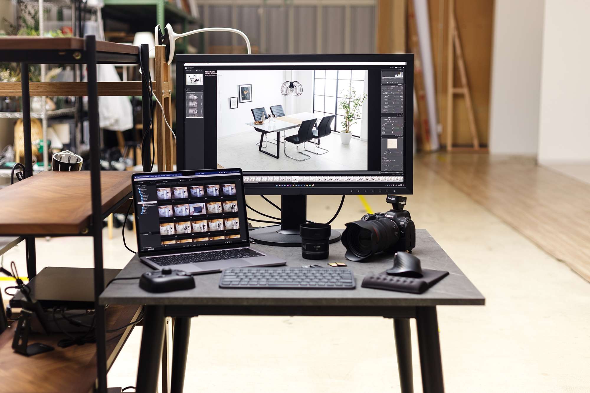 さらに、画像のクオリティにも自信があります。デジタル一眼レフ、大型ストロボに、正しい色を出すためのカラーマネージングモニターといったプロ仕様の機材が充実し、経験豊富な専門カメラマンが撮影するため、コミュニケーションが取りやすく完成度が高いのも魅力。単なる商品写真ではなく、お客様の商品価値を最大限に引き出す高品質な撮影を可能にしています。