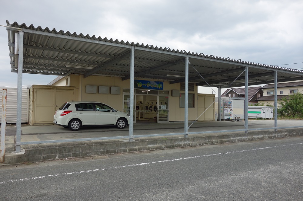 駐車スペースもたっぷりあり、ドライブスルーのように車で入口に洗濯物を持ち込めるので、たくさんの布団も無理なく運べます。