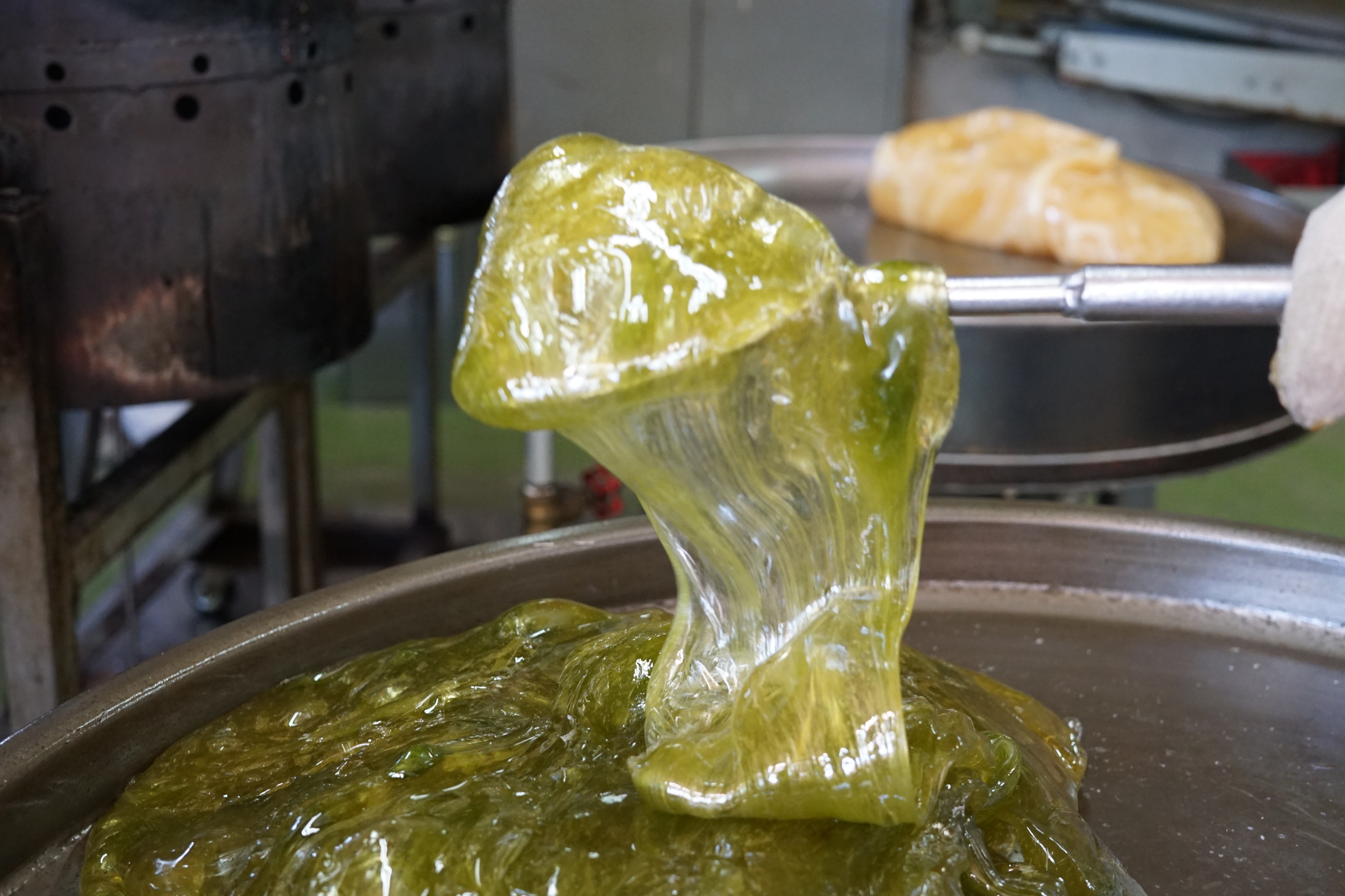 そして、3つ目は、おばあちゃんの知恵袋的な昔ながらの製法や商品を大切に守ること。例えば、看板商品の飴は、大量生産するのではなく、砂糖や水飴の原料を熟練の職人が手作業で丁寧に練りこんでいき、機械と手作業を上手に織り交ぜながら昔ながらの製法で大切に作り上げています。小ロット生産が叶うのは、そのためです。