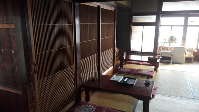 かつて、ござ屋さんだったという築80年の建物は、土間のある昔ながらの間取りや、趣のあるガラス戸、欄間もそのまま。床の間のある座敷に通されると、それだけでほっと一息つけるような居心地の良さがあります。