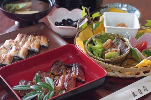 古民家の座敷でうなぎ尽くしの昼食を。