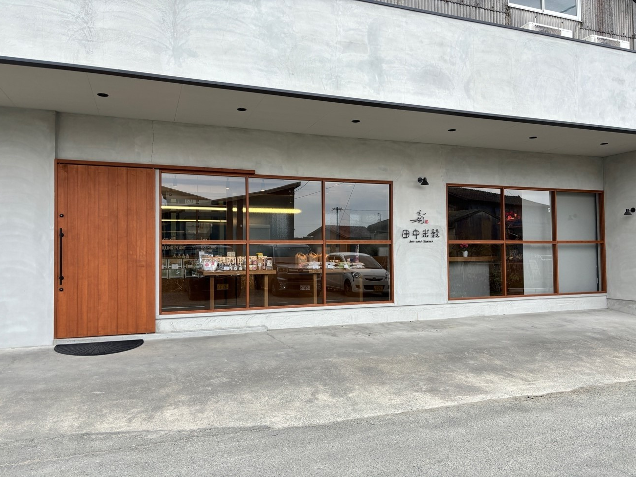 さて、そんな田中米穀店が2023年に大きくリニューアルしました。運び込まれた生籾の乾燥から出荷までの作業を行うライスセンターや。倉庫に併設された通り沿いのショップを全面改装して、本格的なショップをオープンしたのです。