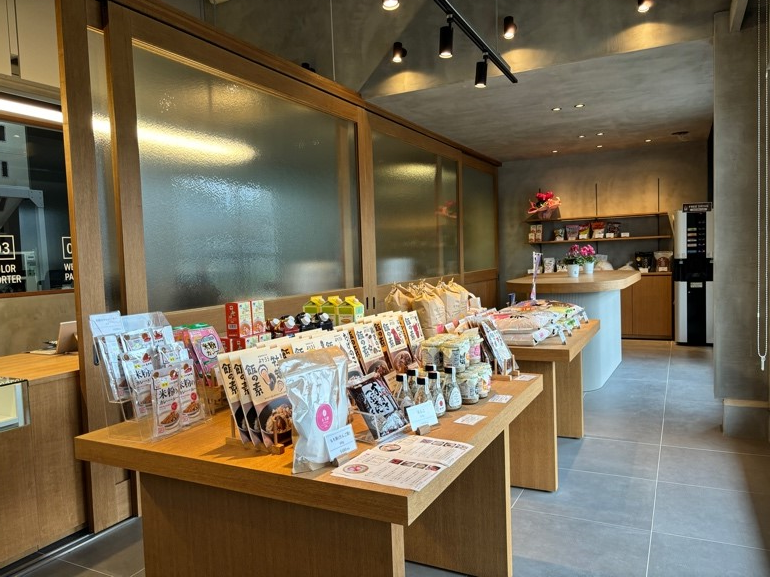新しい店内に入ると、精米したお米を買えるカウンターと、商品スペース、そしてその奥にはコーヒー(無料)を飲みながらくつろげるスペースもあります。