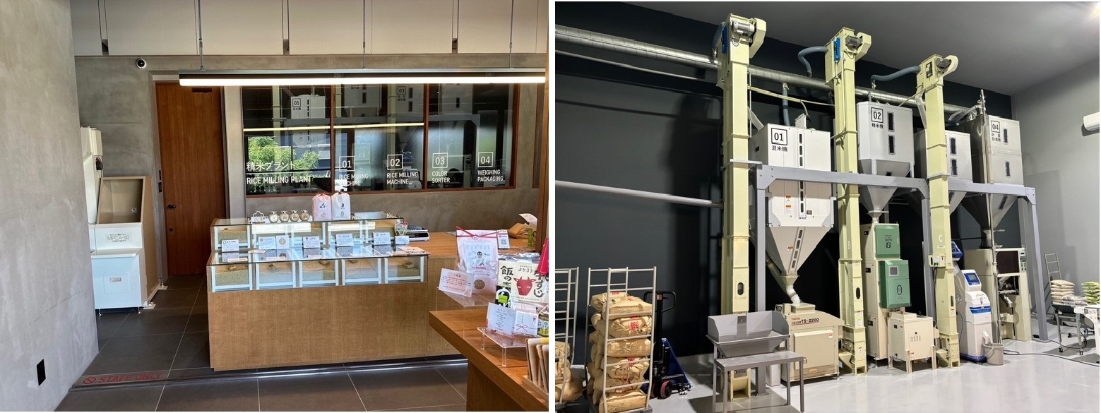 一方では、ネイルをしている女性が増えたことから、近年では無洗米のニーズが高まったことを考慮に入れ、無洗米専用の精米機を新たに導入。精米プラントを店舗から見えるように配置し、精米プラントと店舗を一体化させることにより、生産から流通まで行うという同社の特徴を、あますことなく活かすことができます。
