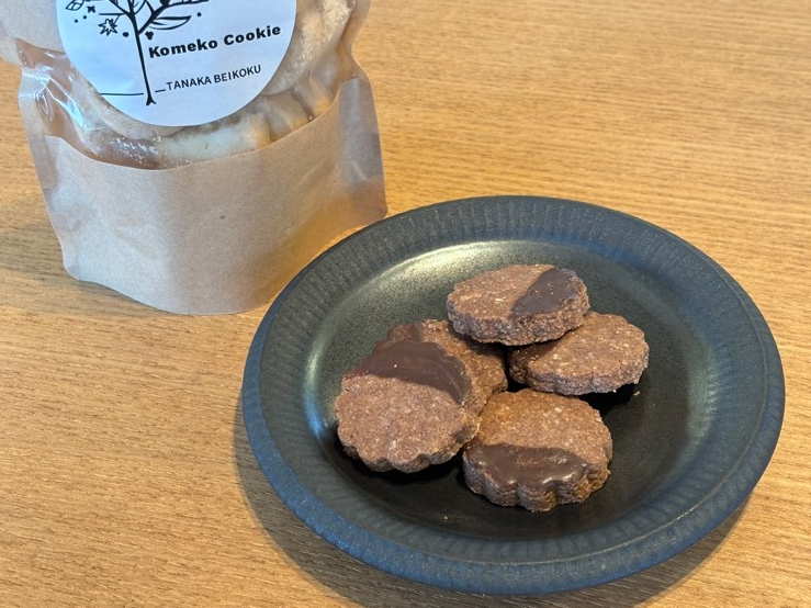 試食したクッキーは、お菓子に最適な米粉に、ココナツオイル、きび砂糖、ココアパウダー、健康成分をそのまま残したローチョコと、厳選した素材を使って作られ、とてもやさしい味わい。チョコレートを使用しているのに甘さ控えめで、パクパク食べても罪悪感のないクッキーです。