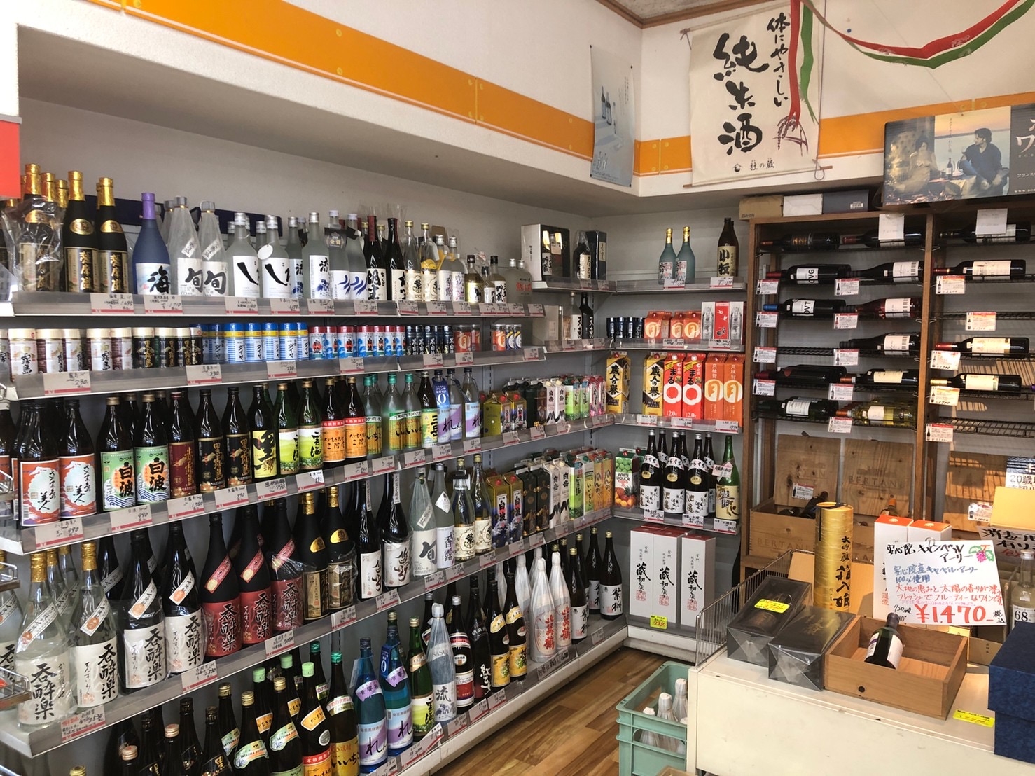 さて、そんな「Yショップえしま」のもう一つの名物は、豊富な酒類です。外観を見ると、一見コンビニ風ですが、店主の江島正彦さんいわく、ここは「コンビニ風の酒屋」。